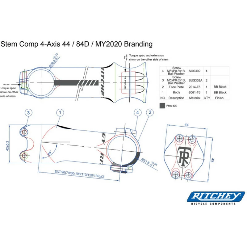Ritchey Vorbau New Comp 20 4-Axis 120mm, BB Black, 31.8mm, 6°/84°