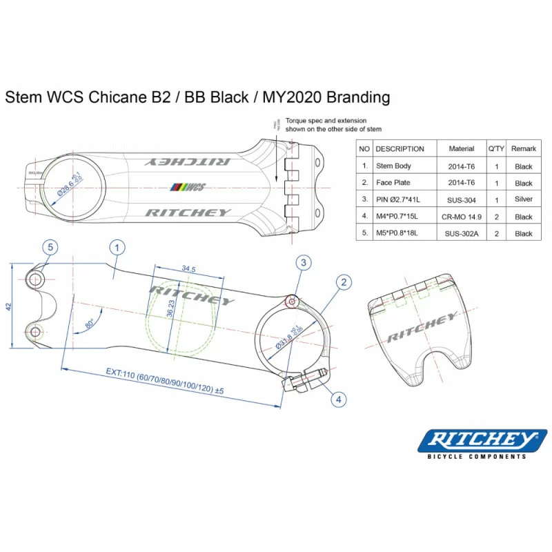 Ritchey Vorbau WCS Chicane B2 100mm, Blatte Black, 31.8mm, 6°/84°